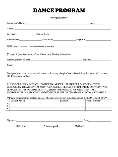 Download Ebook dance medical form template Printed Access Code PDF